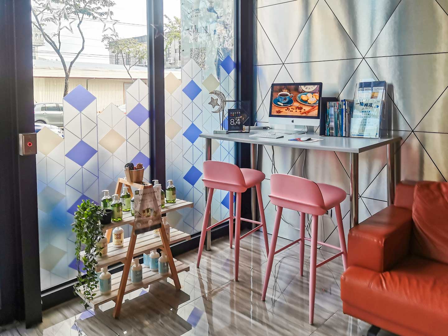 ↳飯店接待大廳備有APPLE電腦上網,有提供洗衣機與脫水機,櫃檯半自動義式咖啡機,需要櫃台人員操作提供咖啡。